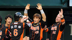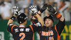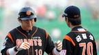 '2009 CJ 마구마구 프로야구' 두산 베어스와 롯데 자이언츠 경기가 21일 잠실 경기장에서 열렸다. 6회초 선두타자 이대호 중월솔로 홈런을 날리고 홈인 로이스터 감독의 환영을 받고 있다./잠실=김영민 기자ajyoung@osen.co.kr