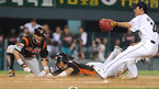 '2009 CJ 마구마구 프로야구' 두산 베어스와 롯데 자이언츠 경기가 21일 잠실 경기장에서 열렸다. 5회말 2사 1루 롯데 선발 손민한이 민병헌을 몸에 맞는 볼로 진루시키며 아쉬워하고 있다./잠실=김영민 기자ajyoung@osen.co.kr