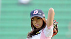 '2009 CJ 마구마구 프로야구' 두산 베어스와 롯데 자이언츠 경기가 21일 잠실 경기장에서 열렸다. 경기에 앞서 혼성 그룹 '에이트'의 주희가 승리 기원 시구를 하고 있다./잠실=김영민 기자ajyoung@osen.co.kr
