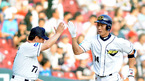 '2009 CJ 마구마구 프로야구' 두산 베어스와 롯데 자이언츠 경기가 21일 잠실 경기장에서 열렸다. 1회말 선두타자 고영민 좌월솔로 홈런을 날리고 김광수 코치의 환영을 받으며 홈인하고 있다./잠실=김영민 기자ajyoung@osen.co.kr