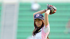 '2009 CJ 마구마구 프로야구' 두산 베어스와 롯데 자이언츠 경기가 21일 잠실 경기장에서 열렸다. 경기에 앞서 혼성 그룹 '에이트'의 주희가 승리 기원 시구를 하고 있다./잠실=김영민 기자ajyoung@osen.co.kr