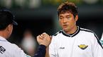 2009 CJ 마구마구 프로야구' 두산 베어스와 롯데 자이언츠의 경기가 22일 잠실 구장에서 벌어졌다. 이 날 경기에서 두산은 고영민의 선제 솔로포와 3회 터진 김현수의 쐐기 만루포 등을 앞세워 롯데에 10-3으로 대승을 거뒀다. 경기를 마치고 두산 김동주가 김경문 감독과 하이파이브를 하고 있다. /잠실=민경훈 기자...