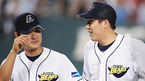 2009 CJ 마구마구 프로야구' 두산 베어스와 롯데 자이언츠의 경기가 22일 잠실 구장에서 벌어졌다. 이 날 경기에서 두산은 고영민의 선제 솔로포와 3회 터진 김현수의 쐐기 만루포 등을 앞세워 롯데에 10-3으로 대승을 거뒀다. 경기를 마치고 두산 유재웅과 김현수가 기쁨을 나누고 있다. /잠실=민경훈 기자 rumi@osen.co.kr...