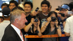 박지성이 활약하고 있는 잉글랜드 프리미어리그의 맨체스터 유나이티드가 24일 서울월드컵경기장에서 벌어질 FC 서울과의 친선 경기를 위해 한국을 방문했다. EPL서 세 해 연속 리그 우승을 차지한 맨유는 2007년에 이어 한국을 두 번째 방문했다. 맨유의 오웬이 팬들의 열렬한 환호 속에 입국장을 나서고 있다./인천공항=김영민...