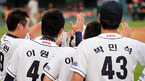 2009 CJ 마구마구 프로야구' 두산 베어스와 롯데 자이언츠의 경기가 22일 잠실 구장에서 벌어졌다. 2회말 1사 주자 만루 두산 김현수가 우중월 만루 홈런을 날린 후 덕아웃에서 동료들에게 몰매를 맞고 있다./잠실=민경훈 기자 rumi@osen.co.kr