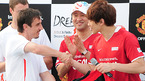 맨유 나이키 사커스쿨 행사가 박지성 에브라 마케다 토시치와 코치진이 참가한가운데 23일 오후 서울 청구초등학교에서 열렸다. EPL서 세 해 연속 리그 우승을 차지한 맨유는 2007년에 이어 한국을 두 번째 방문했다. 훈련을 마친 맨유 선수, 코치진과 참가자들이 기념촬영을 하고 있다./김영민 기자ajyoung@osen.co.kr