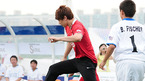 서울시 글로벌 홍보대사를 맡고 있는 가수 비와 박지성이 각각 팀을 꾸려 가진 자선 풋살 경기가 23일 오후 서울 한강 시민공원 반포지구 특설무대에서 열렸다. 비가 풋살 경기중 빠른 돌파를 하고 있다./민경훈 기자 rumi@osen.co.kr