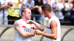 24일 서울월드컵경기장에서 벌어질 FC 서울과의 친선 경기를 위해 22일 한국을 방문한 잉글랜드 프리미어리그의 맨체스터 유나이티드가 23일 오전 공식훈련을 가졌다. EPL서 세 해 연속 리그 우승을 차지한 맨유는 2007년에 이어 한국을 두 번째 방문했다. 퍼디난드가 흐르는 땀을 닦으며 재밌는 표정을 짓고 있다. /상암=손용호...
