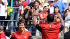 24일 서울월드컵경기장에서 벌어질 FC 서울과의 친선 경기를 위해 22일 한국을 방문한 잉글랜드 프리미어리그의 맨체스터 유나이티드가 23일 오전 공식훈련을 가졌다. EPL서 세 해 연속 리그 우승을 차지한 맨유는 2007년에 이어 한국을 두 번째 방문했다. 루니가 서울월드컵구장에 들어서며 팬들에게 손을 흔들어 인사를 하고 있다. /상암=손용호...