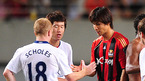 박지성이 활약하고 있는 잉글랜드 프리미어리그 맨체스터 유나이티드와 FC 서울의 친선경기가 24일 서울월드컵 경기장에서 벌어져 맨유가 3-2로 승리를 거두었다. 이날 경기는 맨유의 2009 아시아투어 3차전이다. 경기를 마치고 정조국이 스콜스와 악수를 나누고 있다./손용호 기자 spjj@osen.co.kr