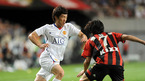 박지성이 활약하고 있는 잉글랜드 프리미어리그 맨체스터 유나이티드와 FC 서울의 친선경기가 24일 서울월드컵 경기장에서 벌어져 맨유가 루니 마케다 베르바토프의 연속골로 데얀이 두 골로 분전한 서울을 3-2로 물리쳤다. 이날 경기는 맨유의 2009 아시아투어 3차전이다. 후반 교체멤버로 들어온 박지성이 김진규를 돌파하고 있다./손용호 기자...