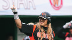 [OSEN=손찬익 기자] '오버맨' 홍성흔(32, 롯데)이 파격적인 헤어스타일으로 눈길을 끌었다. 25일 광주구장에서 열린 2009 CJ 마구마구 올스타전에서 이스턴의 4번 지명타자로 선발 라인업에 포함된 홍성흔은 0-1로 뒤진 2회 금색 가발을 착용하고 타석에 들어섰다. 홍성흔은 선발 윤석민과의 대결에서 중견수 뜬공으로 물러난...