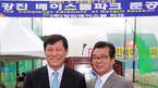 국내 최대 규모 실내 연습구장과 정규구장 4면을 보유한 강진 베이스볼파크 준공식이 25일 전라남도 강진군 도암면 강진베이스볼파크 야구장에서 열렸다. 준공식에는 한국야구위원회(KBO) 유영구 총재와 박준영 전남지사·황주홍 강진군수 등 지역 및 야구계 인사들이 참석했다. 이승엽의 아버지인 이춘광씨가 이승엽의 글귀 옆에서 포토타임을 갖고...
