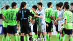 2009 K-리그 전북 현대와 울산 현대의 경기가 26일 전주 월드컵경기장에서 벌어졌다. 이 날 경기에서 전북과 울산은 서로 1-1 무승부를 거뒀다. 경기를 마치고 전북 선수들과 울산 선수들이 인사를 나누고 있다./전주=민경훈 기자 rumi@osen.co.kr