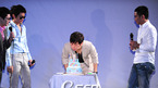그룹 V.O.S 박지헌의 생일파티가 26일 그룹 멤버 최현준 김경록이 참석한 가운데 명동 유네스코 회관에서 열렸다. 박지헌은 얼마 전 아이가 있는 유부남임을 밝혀 팬들에게 충격을 줬다. 박지헌이 팬들이 선물한 캠코더를 들고 최현준에게 자랑 하고 있다. /손용호 기자spjj@osen.co.kr