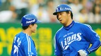 '2009 CJ 마구마구 프로야구' LG 트윈스와 삼성 라이온즈의 경기가 30일 오후 잠실구장에서 벌어졌다. 3회초 1사 주자없는 상황에서 솔로 홈런을 날린 삼성 채태인이 김평호 코치의 축하를 받고 있다./잠실=윤민호 기자ymh@osen.co.kr