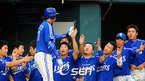 '2009 CJ 마구마구 프로야구' LG 트윈스와 삼성 라이온즈의 경기가 30일 오후 잠실구장에서 벌어졌다. 3회초 1사 주자없는 상황에서 솔로 홈런을 날린 삼성 채태인이 동료선수들에게 축하를 받고 있다./잠실=윤민호 기자ymh@osen.co.kr
