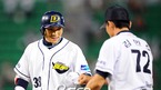 '2009 CJ 마구마구 프로야구' 두산 베어스와 SK 와이번스의 1위 2위간의 잠실벌 선두쟁탈전 경기가 31일 오후 잠실구장에서 벌어졌다. 6회말 무사 만루 상황에 두산 이종욱이 1타점 적시타를 날리고 김민호 코치에게 축하를 받고 있다./잠실=윤민호 기자ymh@osen.co.kr
