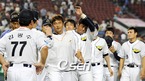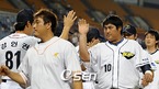 '2009 CJ 마구마구 프로야구' 두산 베어스와 SK 와이번스의 1위 2위간의 잠실벌 선두쟁탈전 경기가 31일 오후 잠실구장에서 벌어졌다. 두산 베어스는 6회 터진 최준석의 역전 결승 쓰리런에 힘입어 6-4 승리를 거둬 SK 와이번스를 제치고 선두로 올라섰다. 승리를 거둔 선수들이 경기장을 나서고 있다./잠실=윤민호...