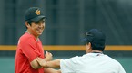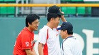 '2009 CJ 마구마구 프로야구' 두산 베어스와 SK 와이번스의 경기가 31일 오후 잠실구장에서 벌어진다. 경기 전 두산 김광수 코치와 SK 김상진 코치가 인사를 나누고 있다./잠실=윤민호 기자ymh@osen.co.kr
