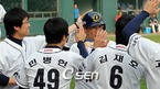 '2009 CJ 마구마구 프로야구' 두산 베어스와 SK 와이번스의 1위 2위간의 선두쟁탈전 경기가 1일 오후 잠실구장에서 벌어졌다. 2회말 무사 1,2루 상황에서 쓰리런 홈런을 날린 두산 임재철이 축하를 받고 있다./잠실=윤민호 기자ymh@osen.co.kr