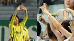 프로축구 '2009K-리그' 성남 일화와 전북 현대 경기가 2일 성남종합운동장에서 열려 성남이 후반 김정우의 2골에 힘입어 3-1 역전 승리를 거두었다. 김정우는 역전골을 성공시키고 여자친구인 탤런트 이연두에게 사랑의 하트 세리머니를 펼쳤고 김정우의 추가골이 터지자 이연두가 손으로 하트 모양을 만들며 축하를 보내고 있다./성남=김영민...