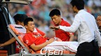 '2009 CJ 마구마구 프로야구' 두산 베어스와 SK 와이번스의 경기가 2일 오후 잠실구장에서 벌어졌다. 3회말 무사 두산 선두타자 김현수의 직선타에 손을 맞고 쓰러진 SK 김광현이 고통스러워하며 엠블런스로 이송되고 있다./잠실=윤민호 기자ymh@osen.co.kr