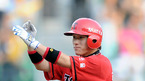 '2009 CJ 마구마구 프로야구' LG 트윈스와 KIA 타이거즈 경기가 4일 잠실 경기장에서 열렸다. 2회초 무사 1,2루 김선빈 우익수 키를 넘기는 1타점 적시타를 날리며 타구를 바라보고 있다./잠실=김영민 기자ajyoung@osen.co.kr