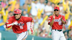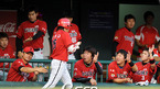 '2009 CJ 마구마구 프로야구' LG 트윈스와 KIA 타이거즈 경기가 4일 잠실 경기장에서 열렸다. 2회초 1사 3루 김원섭의 희생플라이때 3루 주자 이용규 태그업 득점을 올리며 덕아웃 동료의 환영을 받고 있다./잠실=김영민 기자ajyoung@osen.co.kr
