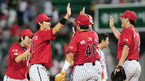 '2009 CJ 마구마구 프로야구' LG 트윈스와 KIA 타이거즈 경기가 5일 잠실 경기장에서 열렸다. 8회말 1사 주자 2루 LG 정성훈이 좌월 투런 홈런을 날린 후 덕아웃에서 동료들과 기쁨을 나누고 있다./잠실=민경훈 기자 rumi@osen.co.kr