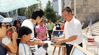 7회 연속 월드컵 진출을 기념하는 국가대표 사진전이 5일 오후 서울 세종문화회관에서 열렸다. 사진전에 참석한 허정무 축구대표팀 감독이 소녀에게 사인을 해주고 있다./윤민호 기자ymh@osen.co.kr 온라인으로 받아보는 스포츠...
