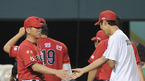 '2009 CJ 마구마구 프로야구' LG 트윈스와 KIA 타이거즈 경기가 6일 잠실 경기장에서 열려 KIA 선발 윤석민의 호투와 김상현,김원섭,안치홍의 홈런에 힘입어 장단 16안타를 터트리며 11-6으로 승리하며 7연승 행진을 이어갔다. 조범현 감독이 선발 승리를 따낸 윤석민과 악수를 하며 축하를 해주고 있다./잠실=김영민...