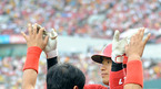 '2009 CJ 마구마구 프로야구' LG 트윈스와 KIA 타이거즈 경기가 6일 잠실 경기장에서 열렸다. 1회초 2사 2루 김상현 우월투런 홈런을 날리고 홈인 이종범으로 부터 축하를 받고 있다./잠실=김영민 기자ajyoung@osen.co.kr