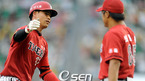 '2009 CJ 마구마구 프로야구' LG 트윈스와 KIA 타이거즈 경기가 6일 잠실 경기장에서 열렸다. 1회초 2사 2루 김상현 우월투런 홈런을 날리고 최태원 코치의 환영을 받으며 그라운드를 돌고 있다./잠실=김영민 기자ajyoung@osen.co.kr
