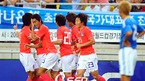 홍명보 감독이 이끄는 한국이 일본과 6일 저녁 수원 월드컵경기장에서 제4회 수원컵 국제청소년(U-20)대회 3차전 경기를 가졌다. 전반 한국 최정한이 선취골을 넣고 동료선수들과 기뻐하고 있다./수원=윤민호 기자ymh@osen.co.kr