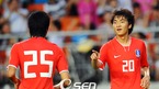 홍명보 감독이 이끄는 한국이 일본과 6일 저녁 수원 월드컵경기장에서 제4회 수원컵 국제청소년(U-20)대회 3차전 경기를 가졌다. 전반 한국의 두번째 골을 성공시킨 이승렬이 동료선수와 기뻐하고 있다./수원=윤민호 기자ymh@osen.co.kr