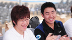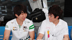 '신한은행 프로리그 08-09' 올스타 1차전 및 SK텔레콤과 화승 오즈의 결승 1차전이 7일 오후 부산 광안리 해수욕장 특설무대에서 열렸다. 경기에 앞서 최고 인기 프로게이머 10명이 참석하는 사인회가 열렸다. 사인회 중 이윤열(위메이드)과 박지수(KT)가 얘기를 나누고 있다./부산=민경훈 기자 rumi@osen.co.kr