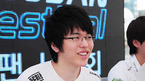 '신한은행 프로리그 08-09' 올스타 1차전 및 SK텔레콤과 화승 오즈의 결승 1차전이 7일 오후 부산 광안리 해수욕장 특설무대에서 열렸다. 경기에 앞서 최고 인기 프로게이머 10명이 참석하는 사인회가 열렸다. 사인회 중 김창희(hite)가 환하게 미소짓고 있다./부산=민경훈 기자 rumi@osen.co.kr