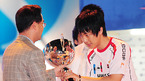 '신한은행 프로리그 08-09' 올스타 2차전 및 SK텔레콤과 화승오즈의 결승 2차전이 8일 오후 부산 광안리 해수욕장 특설무대에서 열렸다. 이 날 결승 경기에서 SK텔레콤은 5-4로 승리를 거두며 '신한은행 프로리그 08-09' 우승을 차지했다. 경기를 마치고 화승오즈 이제동이 대표로 준우승트로피를 받고 있다....