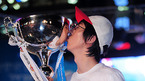 '신한은행 프로리그 08-09' 올스타 2차전 및 SK텔레콤과 화승오즈의 결승 2차전이 8일 오후 부산 광안리 해수욕장 특설무대에서 열렸다. 이 날 결승 경기에서 SK텔레콤은 5-4로 승리를 거두며 '신한은행 프로리그 08-09' 우승을 차지했다. 경기를 마치고 MVP로 뽑힌 SK텔레콤 정명훈이 우승트로피에 키스를...