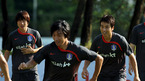 축구대표팀이 12일 파라과이와의 평가전을 앞두고 9일 오전 파주NFC에 소집돼 오후 훈련을 가졌다. 이동국 김정우가 미소를 지으며 훈련에 임하고 있다./파주=김영민 기자ajyoung@osen.co.kr 온라인으로 받아보는 스포츠 신문,...