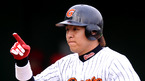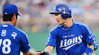 '2009 CJ 마구마구 프로야구' 롯데 자이언츠와 삼성 라이온즈의 경기가 9일 오후 부산 사직구장에서 벌어졌다. 4회초 1사 주자 2루 삼성 손주인 이 중전 1타점 적시타를 날린 후 1루에서 김용국 코치와 하이파이브를 하고 있다./부산=민경훈 기자 rumi@osen.co.kr