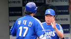 '2009 CJ 마구마구 프로야구' 롯데 자이언츠와 삼성 라이온즈의 경기가 9일 오후 부산 사직구장에서 벌어졌다. 2회초 삼성 채태인이 첫타석에서 우월 솔로 홈런을 날린 후 덕아웃에서 선동열 감독과 하이파이브를 하고 있다./부산=민경훈 기자 rumi@osen.co.kr
