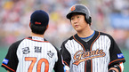 '2009 CJ 마구마구 프로야구' 롯데 자이언츠와 삼성 라이온즈의 경기가 9일 오후 부산 사직구장에서 벌어졌다. 2회말 첫타석에서 롯데 이대호가 좌중간 안타를 날린 후 1루에서 공필성 코치와 기쁨을 나누고 있다./부산=민경훈 기자 rumi@osen.co.kr