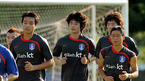 축구대표팀이 12일 파라과이와의 평가전을 앞두고 9일 오전 파주NFC에 소집돼 오후 훈련을 가졌다. 2년여만에 대표팀에 합류한 이동국이 기성용 이영표 등과 러닝으로 몸을 풀고 있다./파주=김영민 기자ajyoung@osen.co.kr