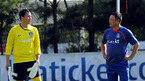 축구대표팀이 12일 파라과이와의 평가전을 앞두고 9일 오전 파주NFC에 소집eho 오후 훈련을 가졌다. 훈련에 앞서 허정무 감독과 이운재 골키퍼가 전날 열린 조모컵 경기에 대하여 이야기를 나누고 있다./파주=김영민 기자ajyoung@osen.co.kr