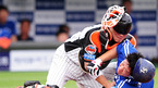 '2009 CJ 마구마구 프로야구' 롯데 자이언츠와 삼성 라이온즈의 경기가 9일 오후 부산 사직구장에서 벌어졌다. 3회초 무사 주자 1루 삼성 박한이의 중전 안타때 1루 주자 조동찬이 홈으로 쇄도, 롯데 최기문 포수와 부딪히며 태그 아웃되고 있다./부산=민경훈 기자 rumi@osen.co.kr