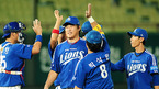 '2009 CJ 마구마구 프로야구' 히어로즈와 삼성 라이온즈의 경기가 12일 목동 구장에서 벌어졌다. 이 날 경기에서 삼성은 선발 윤성환의 1실점 호투와 장단 15안타를 집중적으로 몰아친 타선을 앞세워 히어로즈에게 9-4로 완승을 거뒀다. 경기를 마치고 세이브 투수가 된 삼성 정현욱이 동료들과 하이파이브를 하고 있다./목동=민경훈...