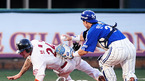 '2009 CJ 마구마구 프로야구' 히어로즈와 삼성 라이온즈의 경기가 12일 목동 구장에서 벌어졌다. 2회말 1사 주자 2,3루 히어로즈 김일경의 3루수 앞 땅볼때 3루주자 브룸바가 홈 쇄도 중 귀루, 삼성 현재윤 포수에게 태그아웃당하고 있다./목동=민경훈 기자 rumi@osen.co.kr