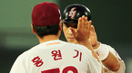 '2009 CJ 마구마구 프로야구' 히어로즈와 삼성 라이온즈의 경기가 13일 목동 구장에서 벌어졌다. 3회말 첫타석에서 히어로즈 이택근이 중전 2루타를 날린 후 2루에서 홍원기 코치와 하이파이브를 하고 있다. /목동=민경훈 기자 rumi@osen.co.kr